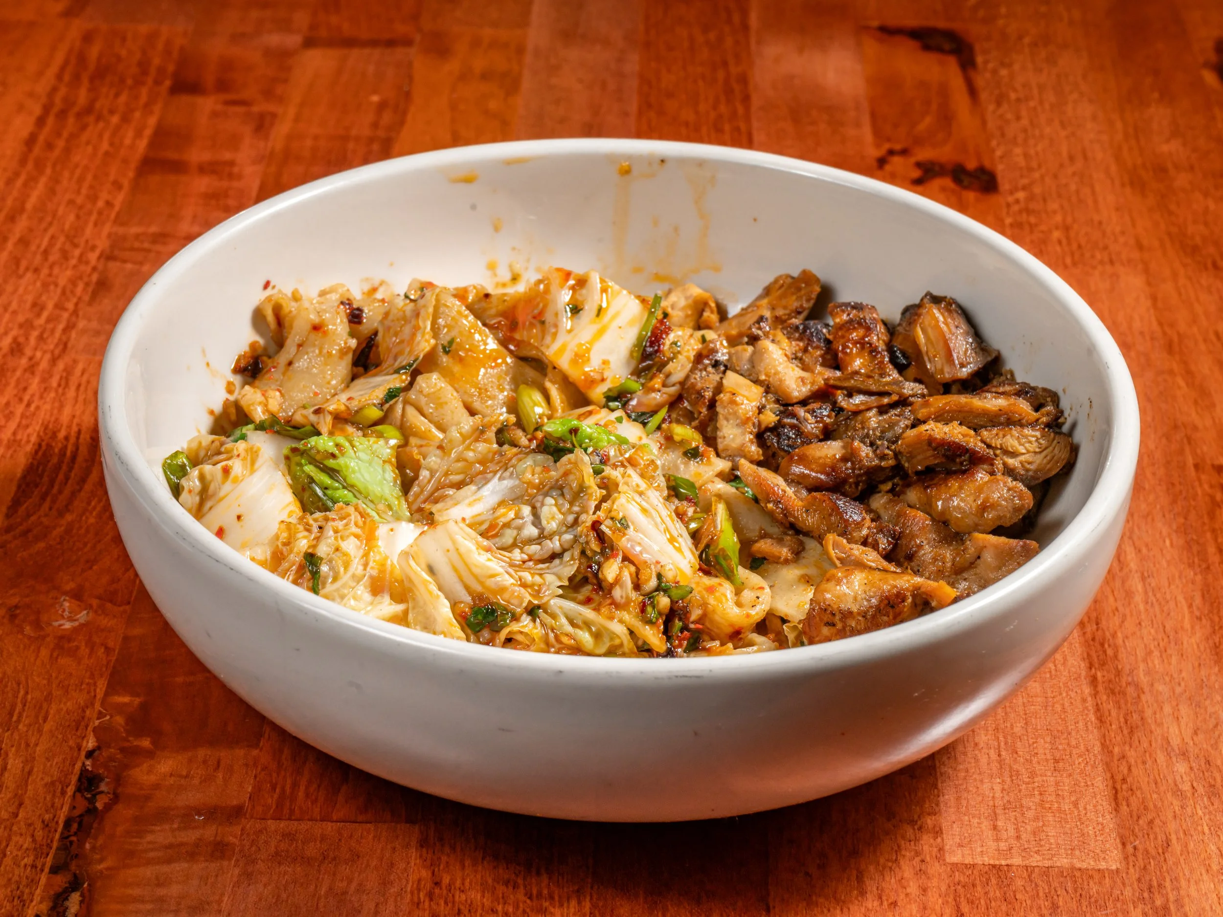 Biang Biang Noodles (choice of vegan, steak or chicken) Eggrolls & Wontons